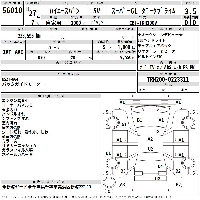 TOYOTA HIACE VAN 2015 г., лот № 56010