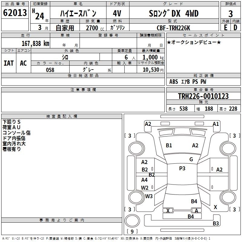 TOYOTA HIACE VAN 2012 г., лот № 62013