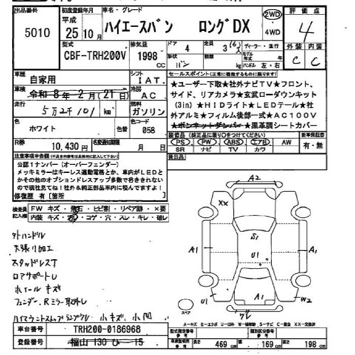 TOYOTA HIACE VAN 2013 г., лот № 5010