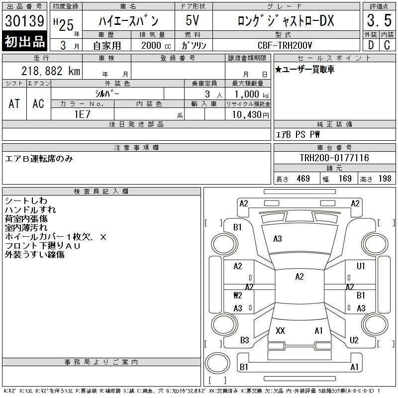 TOYOTA HIACE VAN 2013 г., лот № 30139