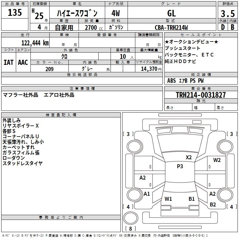 | GRAND CABIN | CBA-TRH229W | 2TR-FE | Full-time 4WD | 4AT | 2693cc | 151ps(111kW)/4800rpm | AИ-92 | 3 587 000 | |