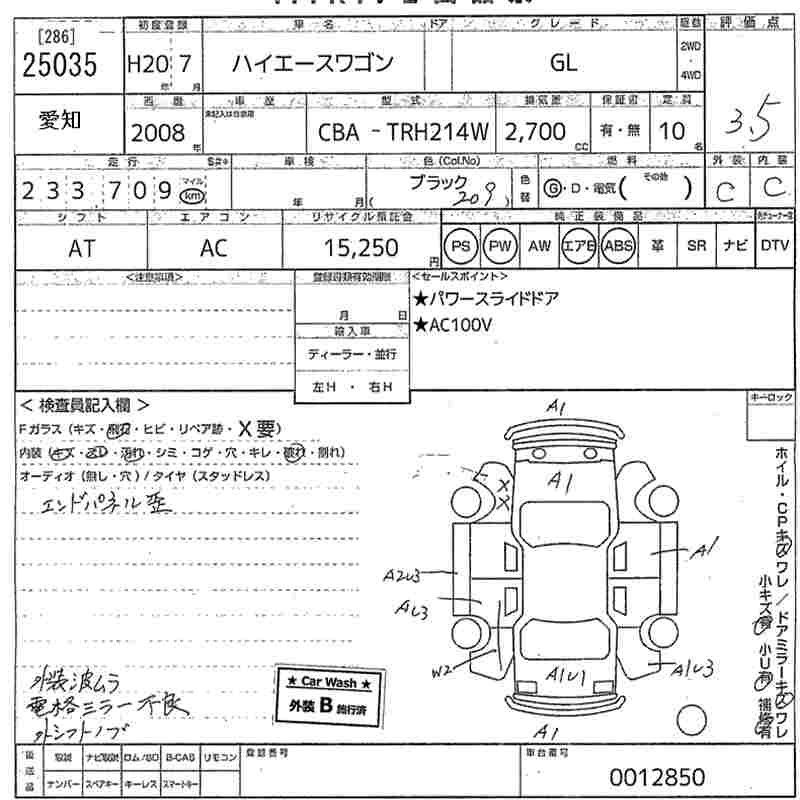 TOYOTA HIACE WAGON 2008 г., лот № 25035