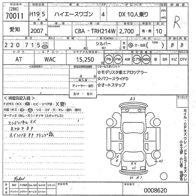 | GRAND CABIN | CBA-TRH224W | 2TR-FE | FR | 4AT | 2693cc | 151ps(111kW)/4800rpm | AИ-92 | 3 150 000 | |