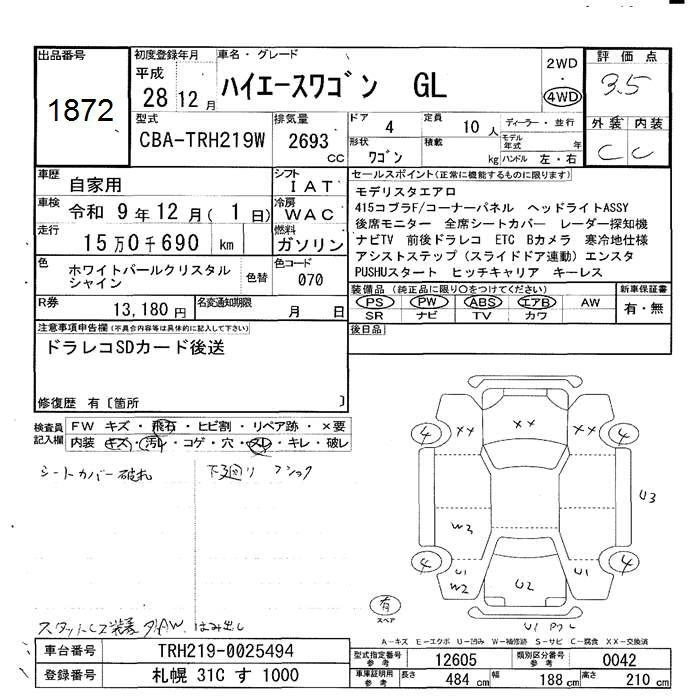 | GRAND CABIN | CBA-TRH229W | 2TR-FE | Full-time 4WD | 6AT | 2693cc | 160ps(118kW)/5200rpm | AИ-92 | 3 826 145 | |