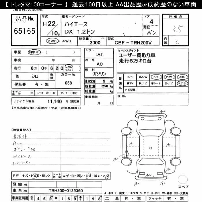 TOYOTA HIACE 2010 г., лот № 65165