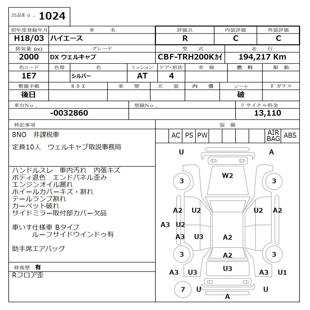 TOYOTA HIACE 2006 г., лот № 1024