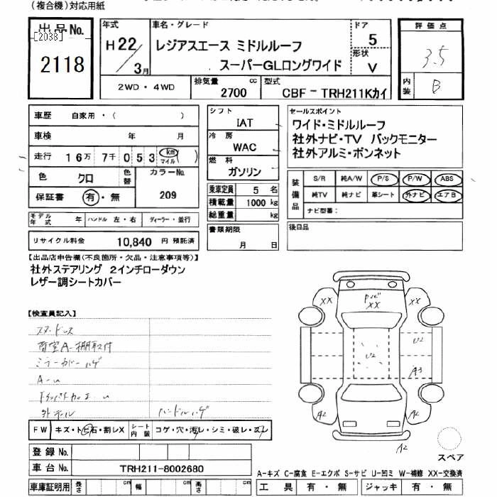 Год выпуска2010 Пробег 167 000 км КузовTRH211K Комплектация SUPER GL LONG WIDE MIDDLE-ROOF