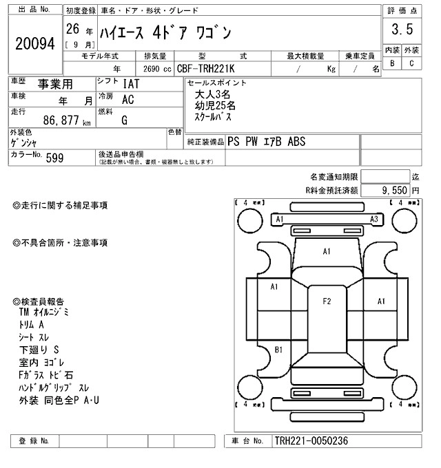 TOYOTA HIACE 2014 г., лот № 20094