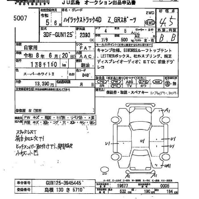 Статус выставлен на аукцион Лот 5007 Аукцион JU Hiroshima Дата аукциона 29.01.2026