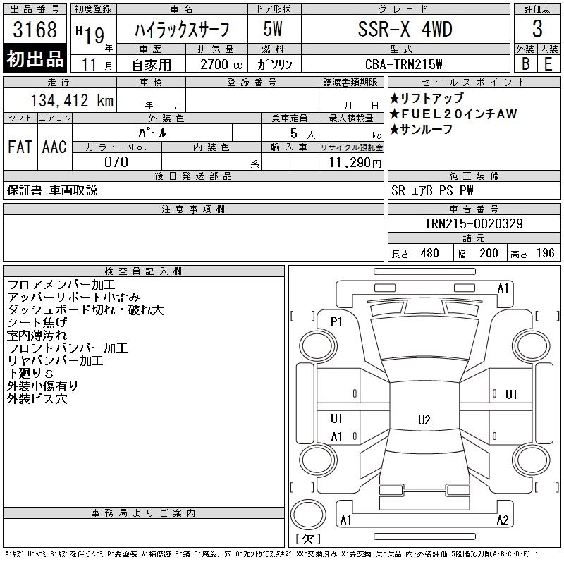 | SSR-X LIMITED | CBA-TRN215W | 2TR-FE | Part-time 4WD | 4AT | 2693cc | 163ps(120kW)/5200rpm | AИ-92 | 3 013 500 |