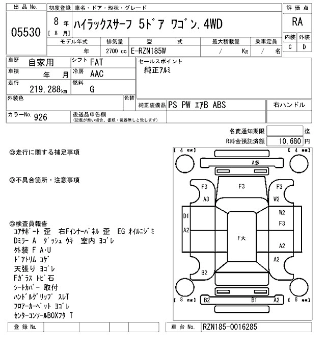 TOYOTA HILUX SURF 1996 г., лот № 5530