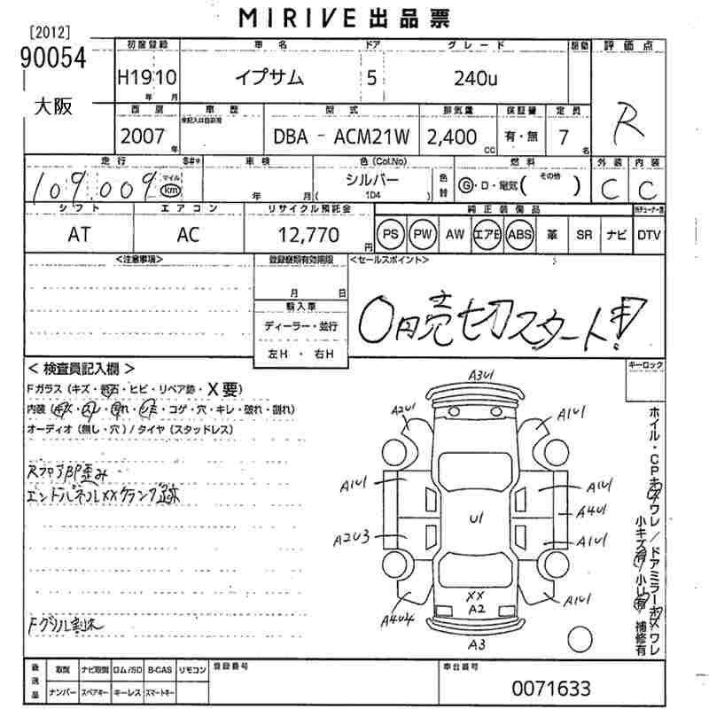 | 240U G SELECTION | DBA-ACM26W | 2AZ-FE | Full-time 4WD | 4AT | 2362cc | 160ps(118kW)/5700rpm | AИ-92 | 3 024 000 | |