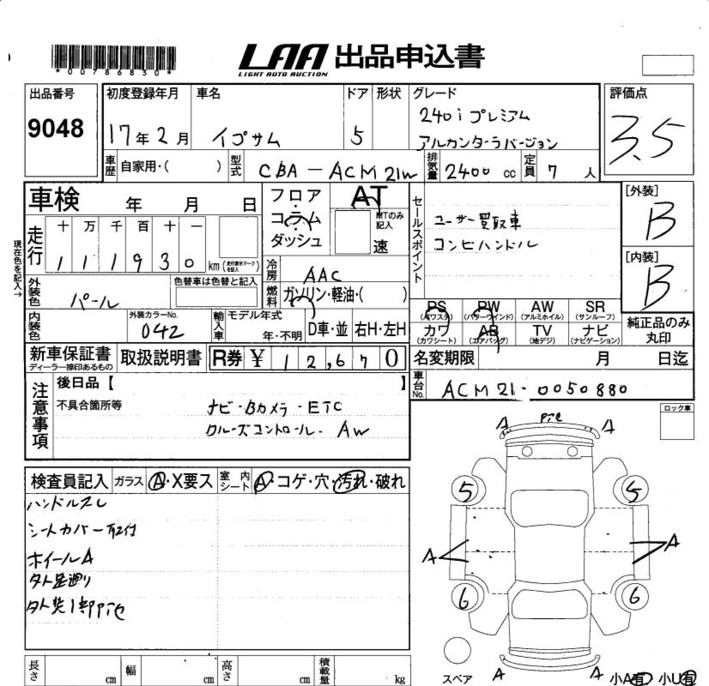| 240I | DBA-ACM21W | 2AZ-FE | FF | 4AT | 2362cc | 160ps(118kW)/5700rpm | AИ-92 | 2 257 500 |