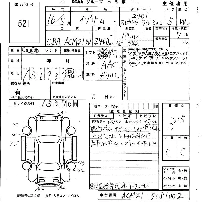 TOYOTA IPSUM 2004 г., лот № 521