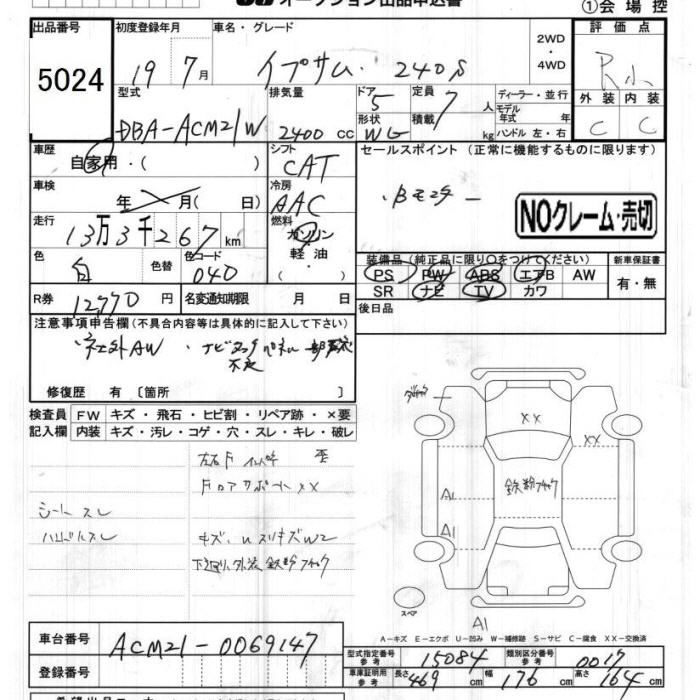 | 240U G SELECTION | DBA-ACM26W | 2AZ-FE | Full-time 4WD | 4AT | 2362cc | 160ps(118kW)/5700rpm | AИ-92 | 3 024 000 | |
