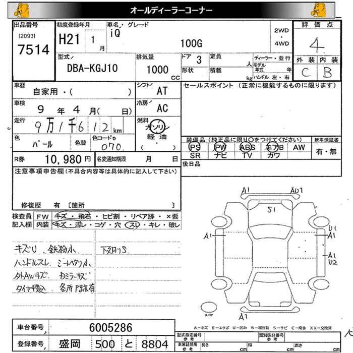 Стартовая цена авто на аукционе 10 000 ¥