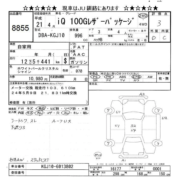 TOYOTA IQ 2009 г., лот № 8855