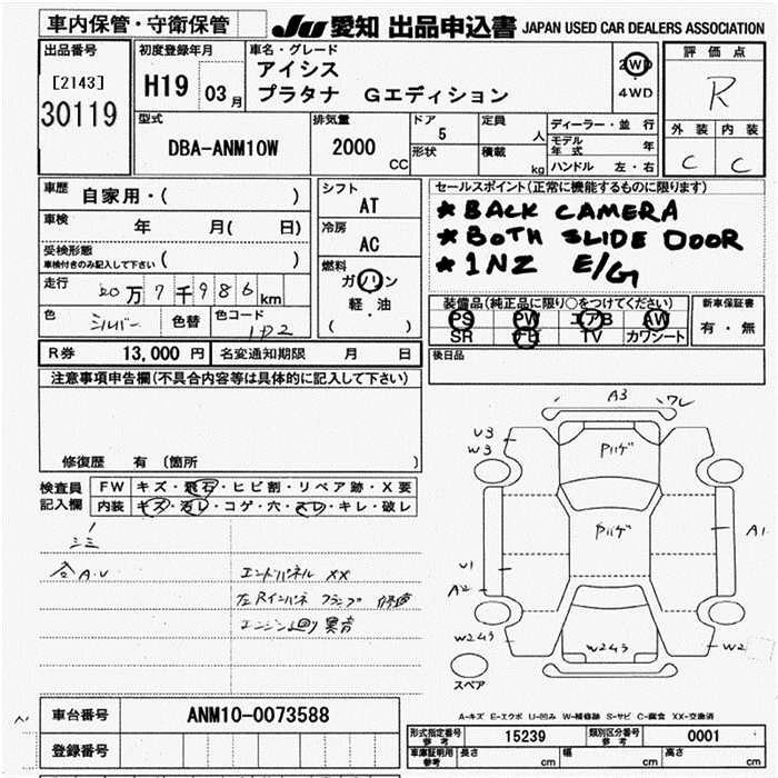 | G U SELECTION | DBA-ANM10G | 1AZ-FSE(D-4) | FF | CVT | 1998cc | 155ps(114kW)/6000rpm | AИ-92 | 2 562 000 | |