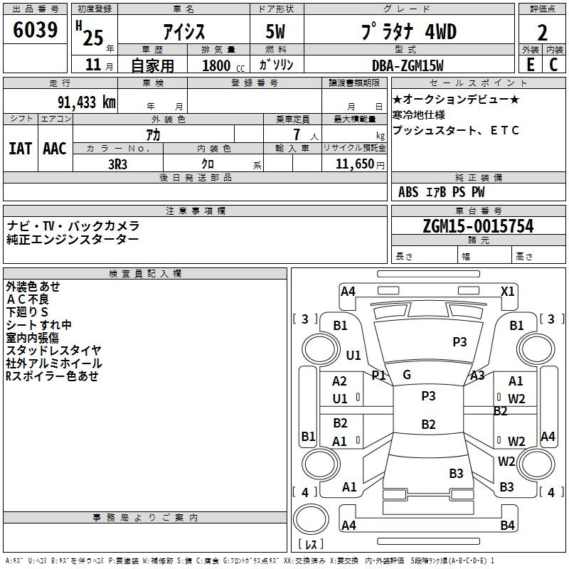| PLATANA V SELECTION NOIR | DBA-ZGM15W | 2ZR-FAE | Full-time 4WD | CVT | 1797cc | 130ps(96kW)/6200rpm | AИ-92 | 2 580 000 | |