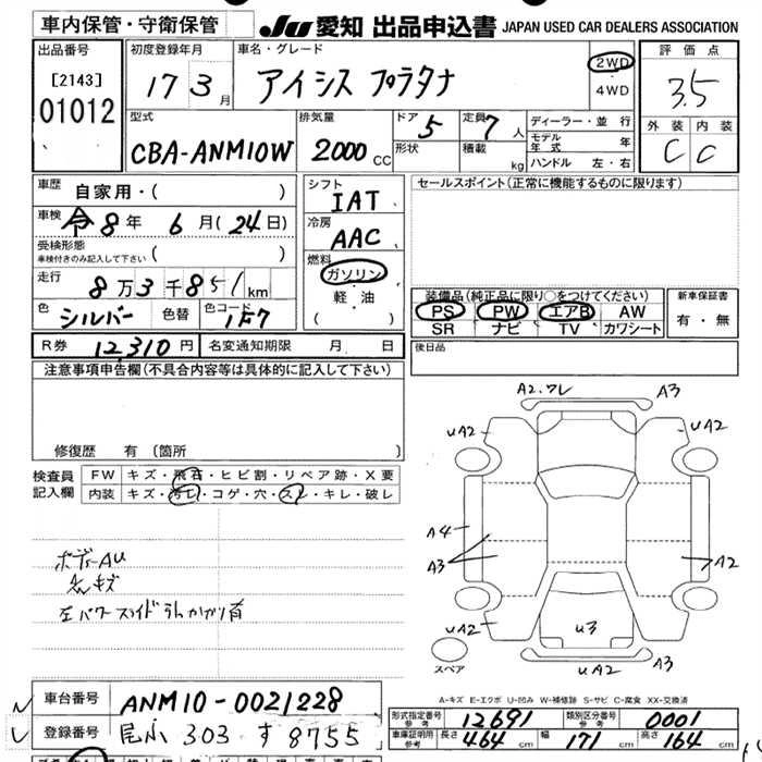 | G U SELECTION | DBA-ANM10G | 1AZ-FSE(D-4) | FF | CVT | 1998cc | 155ps(114kW)/6000rpm | AИ-92 | 2 520 000 | |