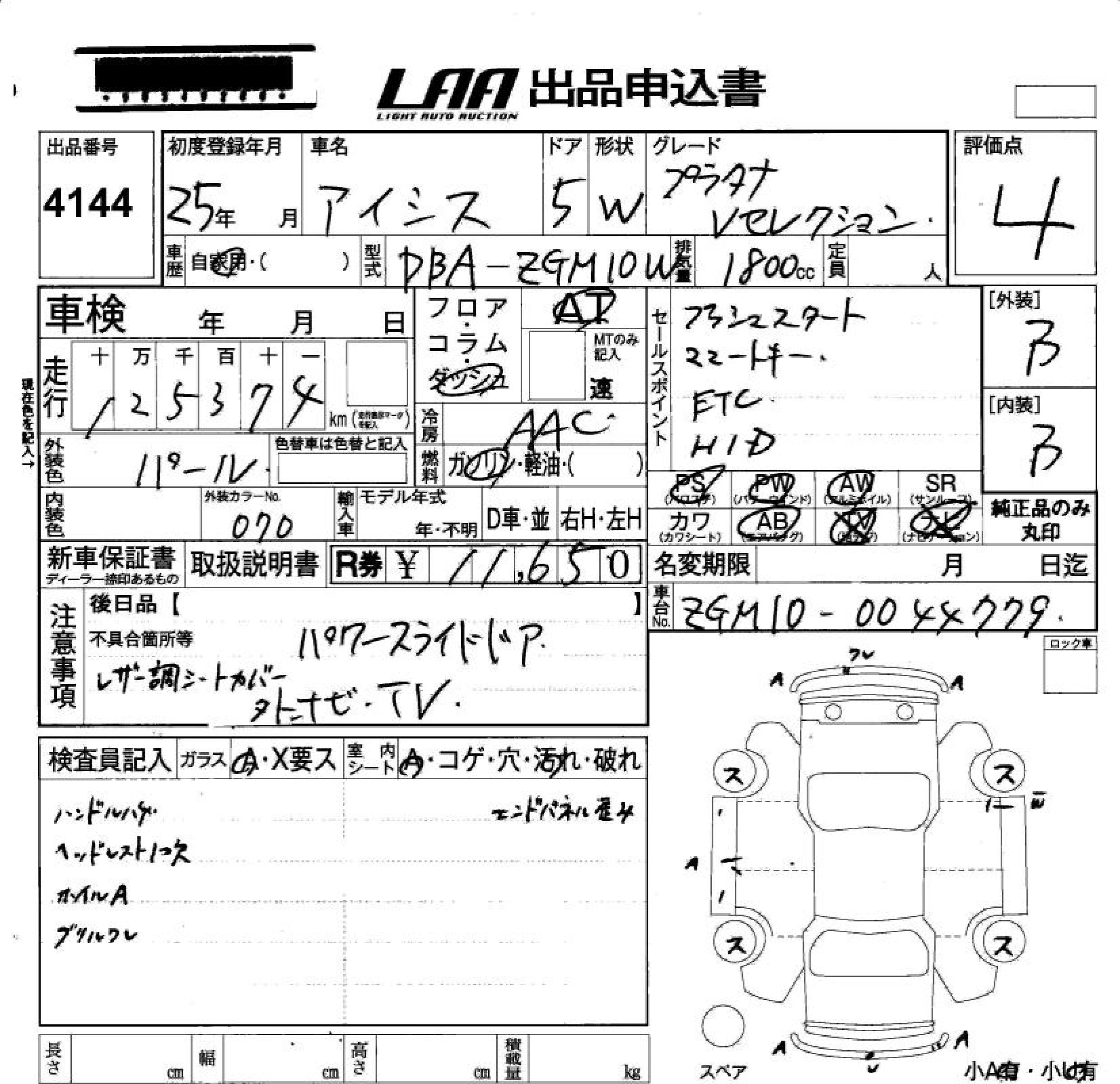 | PLATANA | DBA-ZGM15W | 2ZR-FAE | Full-time 4WD | CVT | 1797cc | 130ps(96kW)/6200rpm | AИ-92 | 2 360 000 | |