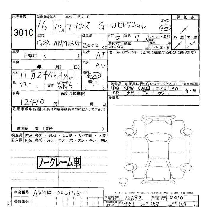 | G U SELECTION | CBA-ANM10G | 1AZ-FSE(D-4) | FF | CVT | 1998cc | 155ps(114kW)/6000rpm | AИ-92 | 2 520 000 | |