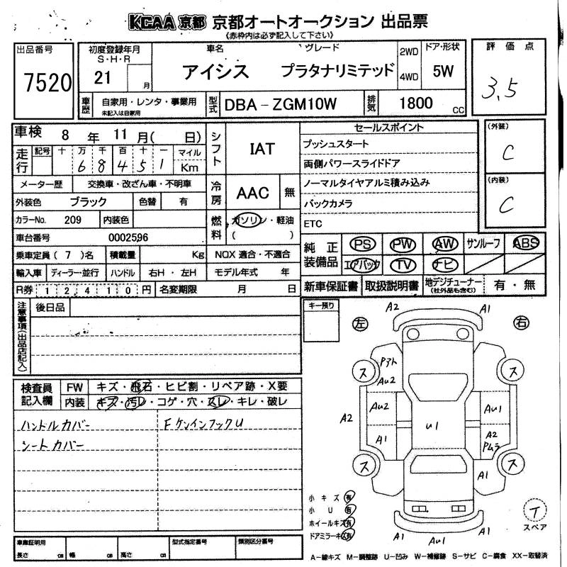 | PLATANA U SELECTION | DBA-ZGM15W | 2ZR-FAE | Full-time 4WD | CVT | 1797cc | 133ps(98kW)/6400rpm | AИ-92 | 2 529 000 | |