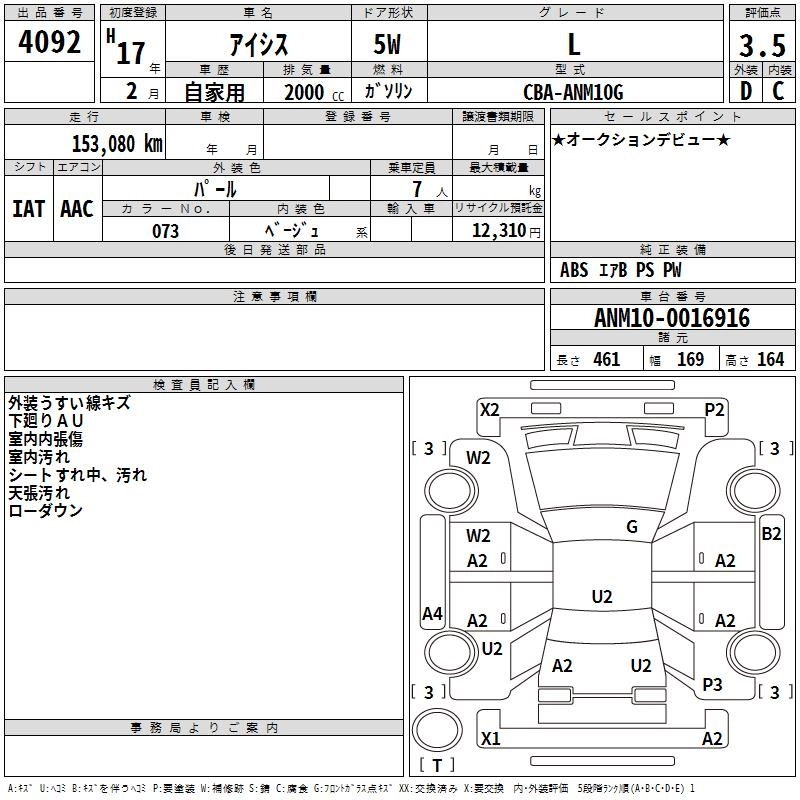 | G U SELECTION | DBA-ANM10G | 1AZ-FSE(D-4) | FF | CVT | 1998cc | 155ps(114kW)/6000rpm | AИ-92 | 2 520 000 | |