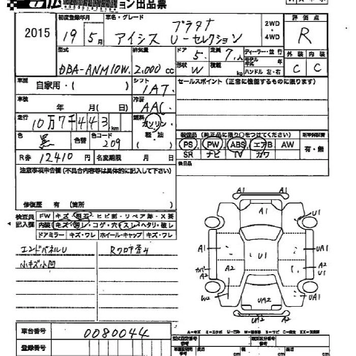 | PLATANA U SELECTION | DBA-ANM15W | 1AZ-FSE(D-4) | Full-time 4WD | CVT | 1998cc | 155ps(114kW)/6000rpm | AИ-92 | 2 604 000 | |