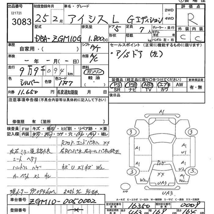 | PLATANA | DBA-ZGM15W | 2ZR-FAE | Full-time 4WD | CVT | 1797cc | 130ps(96kW)/6200rpm | AИ-92 | 2 360 000 | |