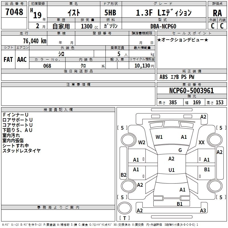| 150X | DBA-NCP110 | 1NZ-FE | FF | CVT | 1496cc | 109ps(80kW)/6000rpm | AИ-92 | 1 659 000 |
