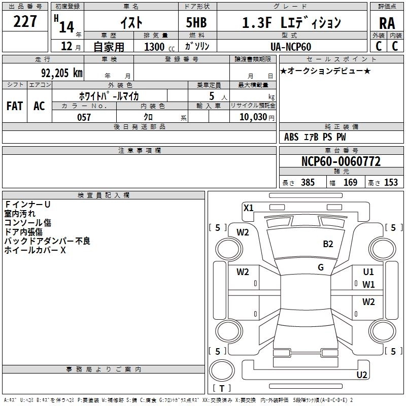 | 1.3 F L EDITION | UA-NCP60 | 2NZ-FE | FF | 4AT | 1298cc | 87ps(64kW)/6000rpm | AИ-92 | 1 300 000 | |
