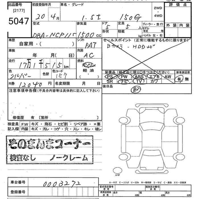 | 150X SPECIAL EDITION | DBA-NCP115 | 1NZ-FE | Full-time 4WD | CVT | 1496cc | 103ps(76kW)/6000rpm | AИ-92 | 1 932 000 | |