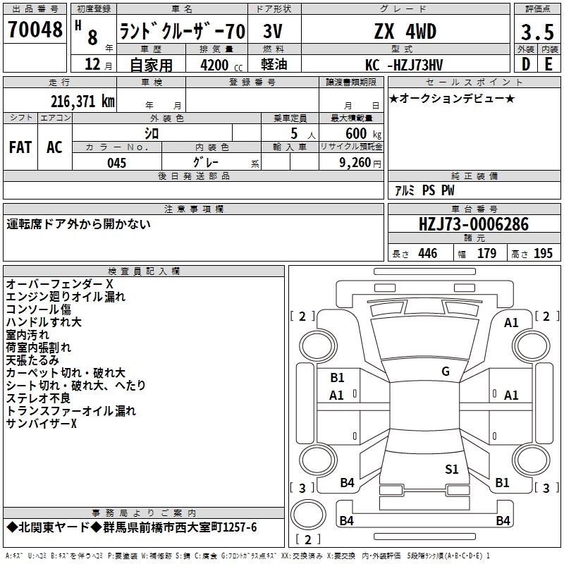 | LX | KC-HZJ70V | 1HZ | Part-time 4WD | 5MT | 4163cc | 135ps(99kW)/4000rpm | Дизельное топливо | 2 398 000 | |