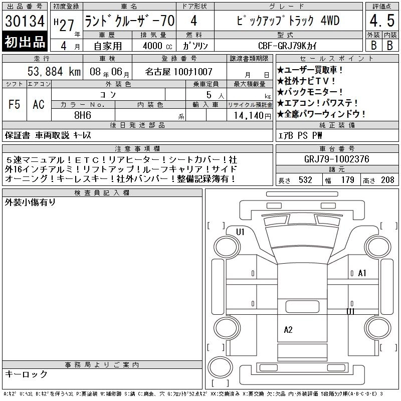 TOYOTA LAND CRUISER 70 2015 г., лот № 30134