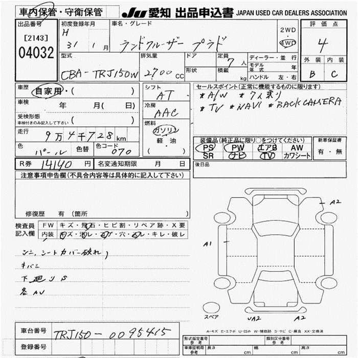 TX CBA-TRJ150W 2TR-FE Full-time 4WD 6AT 2693cc 163ps(120kW)/5200rpm AИ-92 3 603 600