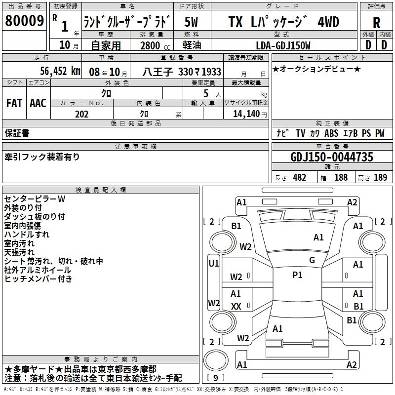 TX CBA-TRJ150W 2TR-FE Full-time 4WD 6AT 2693cc 163ps(120kW)/5200rpm AИ-92 3 603 600