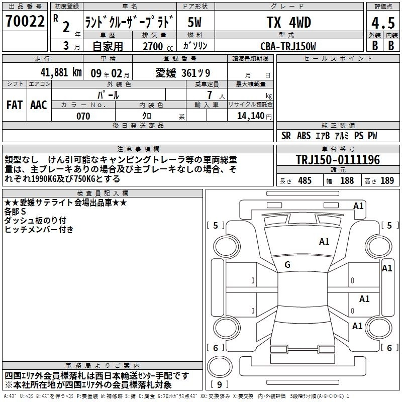 | TX L PACKAGE | 3BA-TRJ150W | 2TR-FE | Full-time 4WD | 6AT | 2693cc | 163ps(120kW)/5200rpm | AИ-92 | 4 140 000 | |