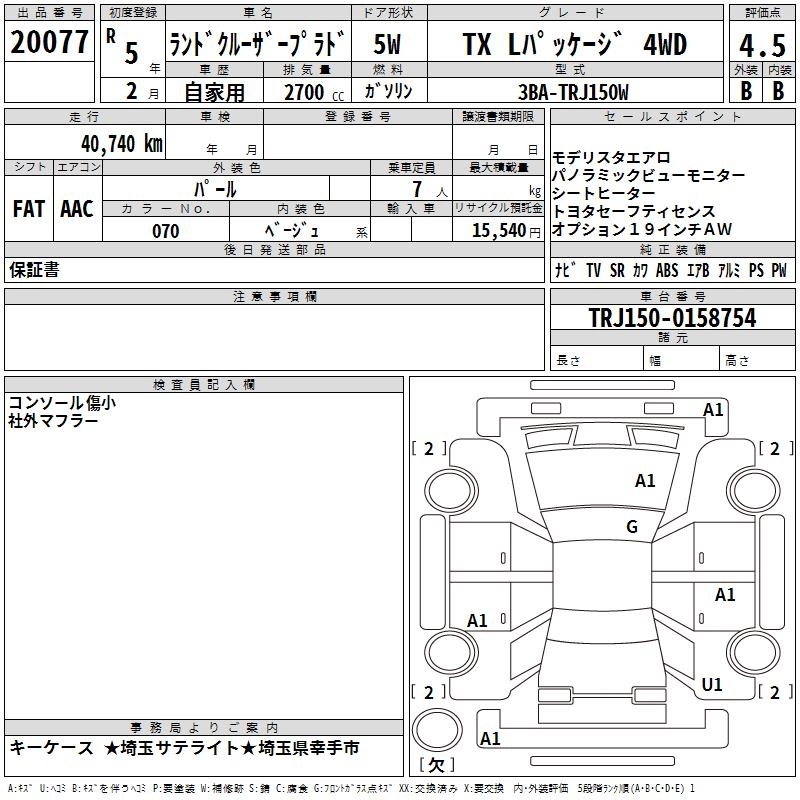 41 000 км КузовTRJ150W КомплектацияTX L PACKAGE 4WD