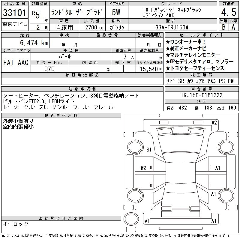 6 000 км КузовTRJ150W КомплектацияTXL PACKAGE MAT BLA4WD