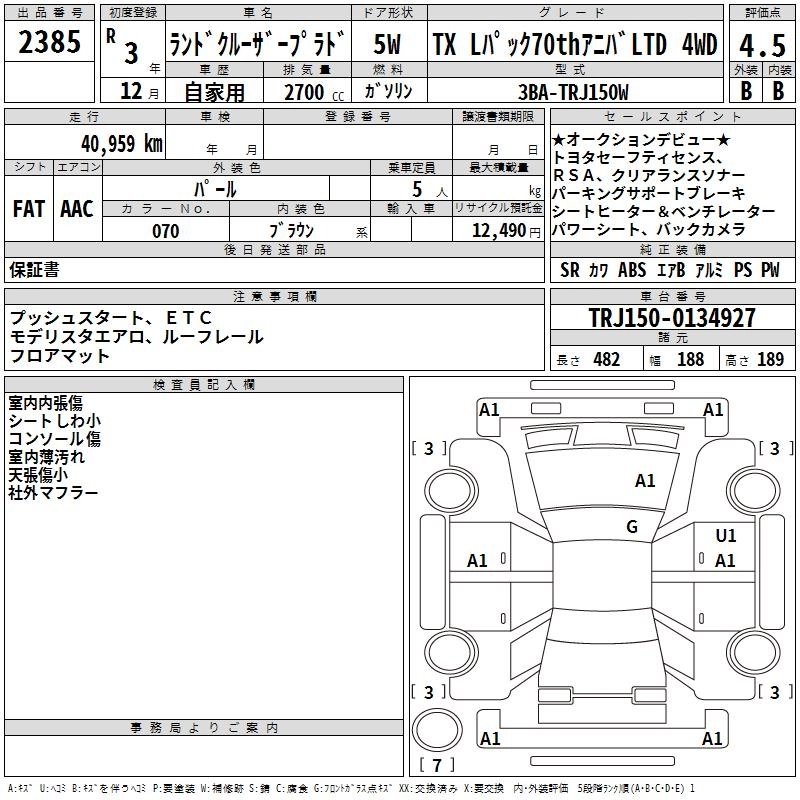 41 000 км КузовTRJ150W КомплектацияTX L PACK 70TH ANNIVER 4WD