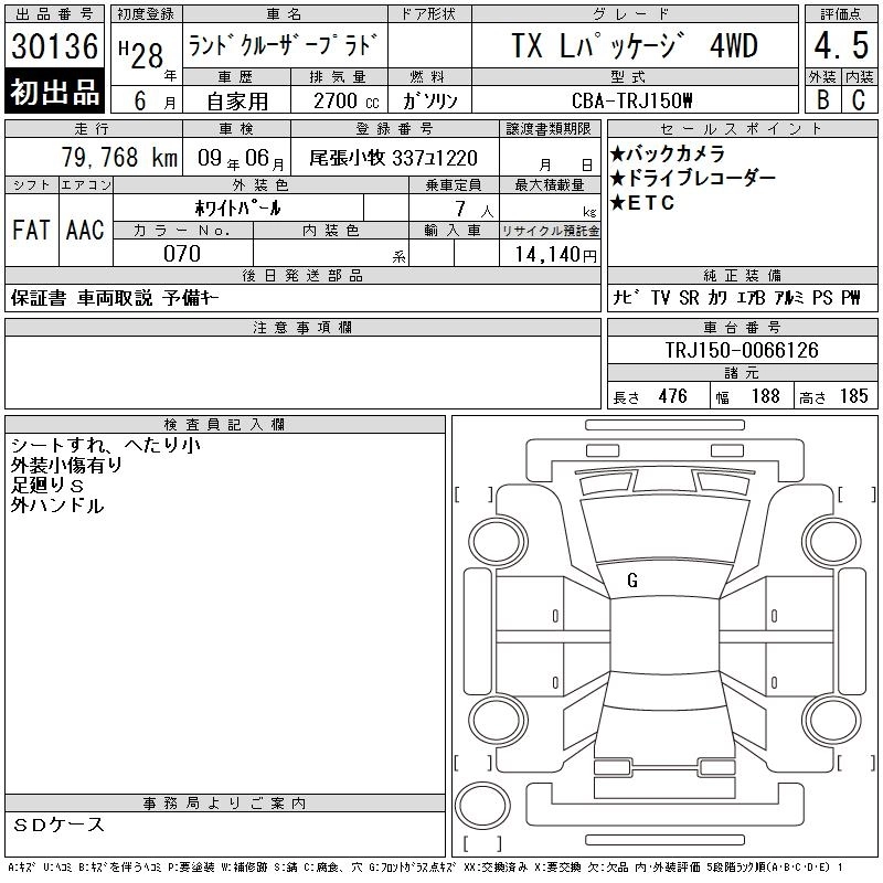 | TX L PACKAGE G-FRONTIER | CBA-TRJ150W | 2TR-FE | Full-time 4WD | 6AT | 2693cc | 163ps(120kW)/5200rpm | AИ-92 | 4 037 040 |