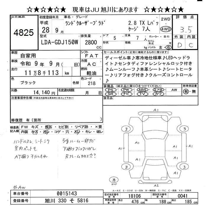 TX L PACKAGE G-FRONTIER LDA-GDJ150W 1GD-FTV Full-time 4WD 6AT 2754cc 177ps(130kW)/3400rpm Дизельное топливо 4 775 760