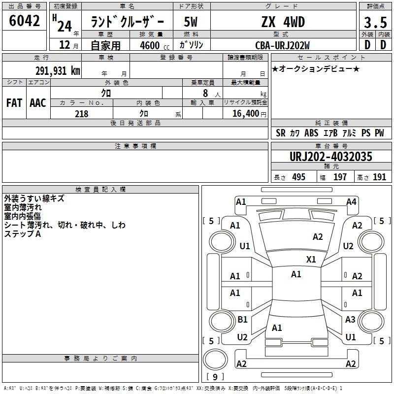 | AX G SELECTION | CBA-URJ202W | 1UR-FE | Full-time 4WD | 6AT | 4608cc | 318ps(234kW)/5600rpm | AИ-95 | 5 500 000 | |
