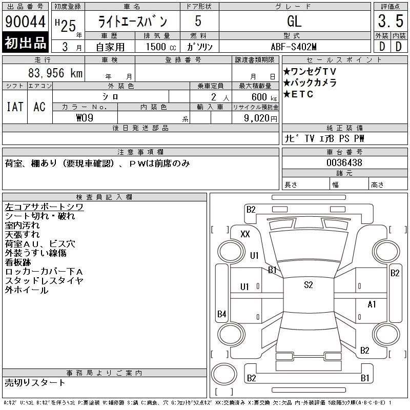 TOYOTA LITE ACE VAN 2013 г., лот № 90044