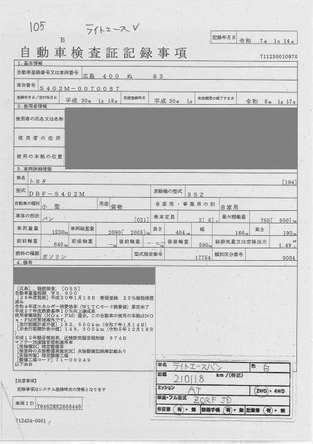 TOYOTA LITE ACE VAN 2018 г., лот № 105