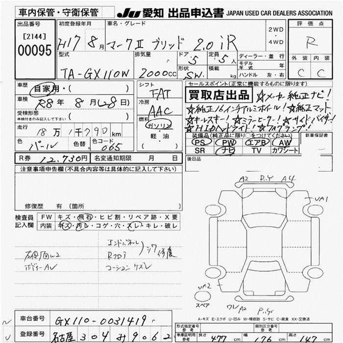 Год выпуска2005 Пробег 182 000 км КузовGX110W Комплектация2.0iR