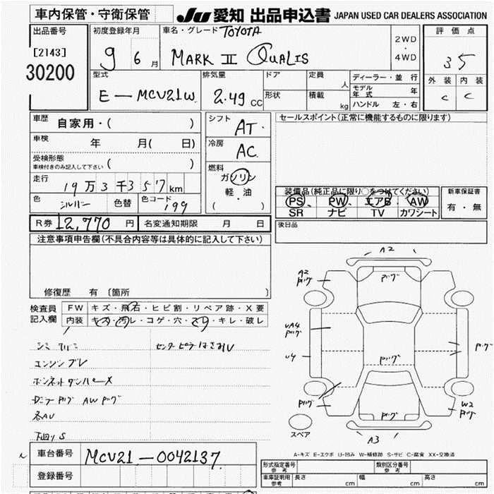 TOYOTA MARK II QUALIS 1997 г., лот № 30200
