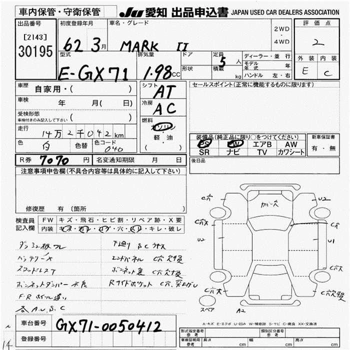 TOYOTA MARK II 1987 г., лот № 30195