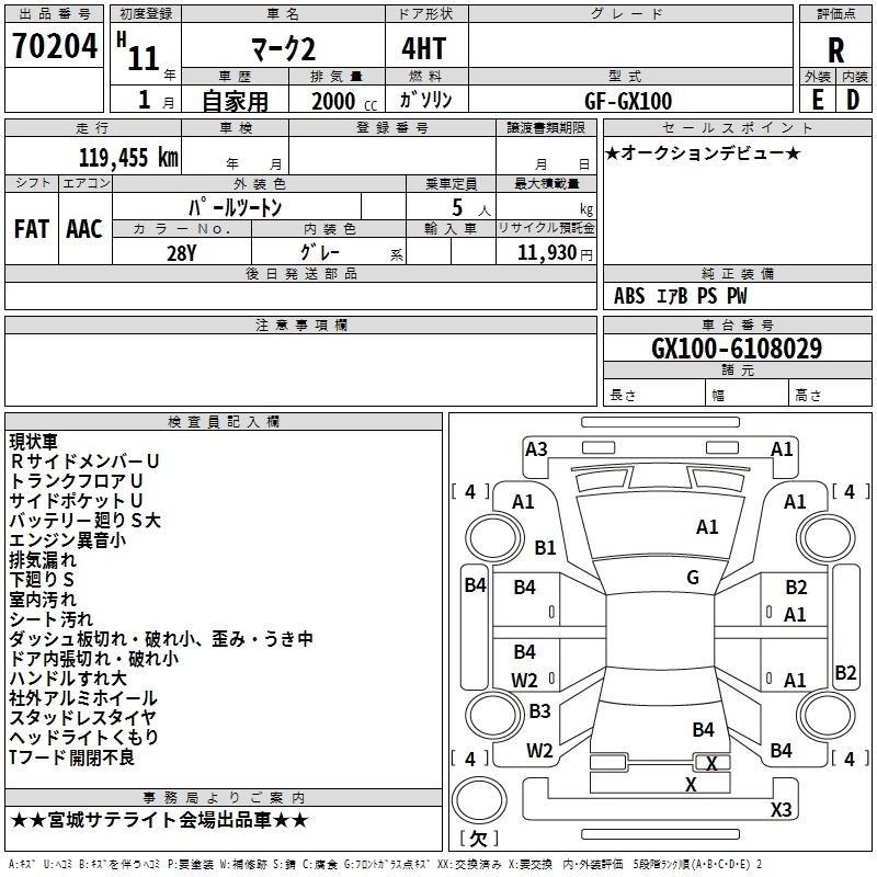 | GRANDE REGALIA | GF-GX100 | 1G-FE | FR | 4AT | 1988cc | 160ps(118kW)/6200rpm | AИ-92 | 2 460 000 |